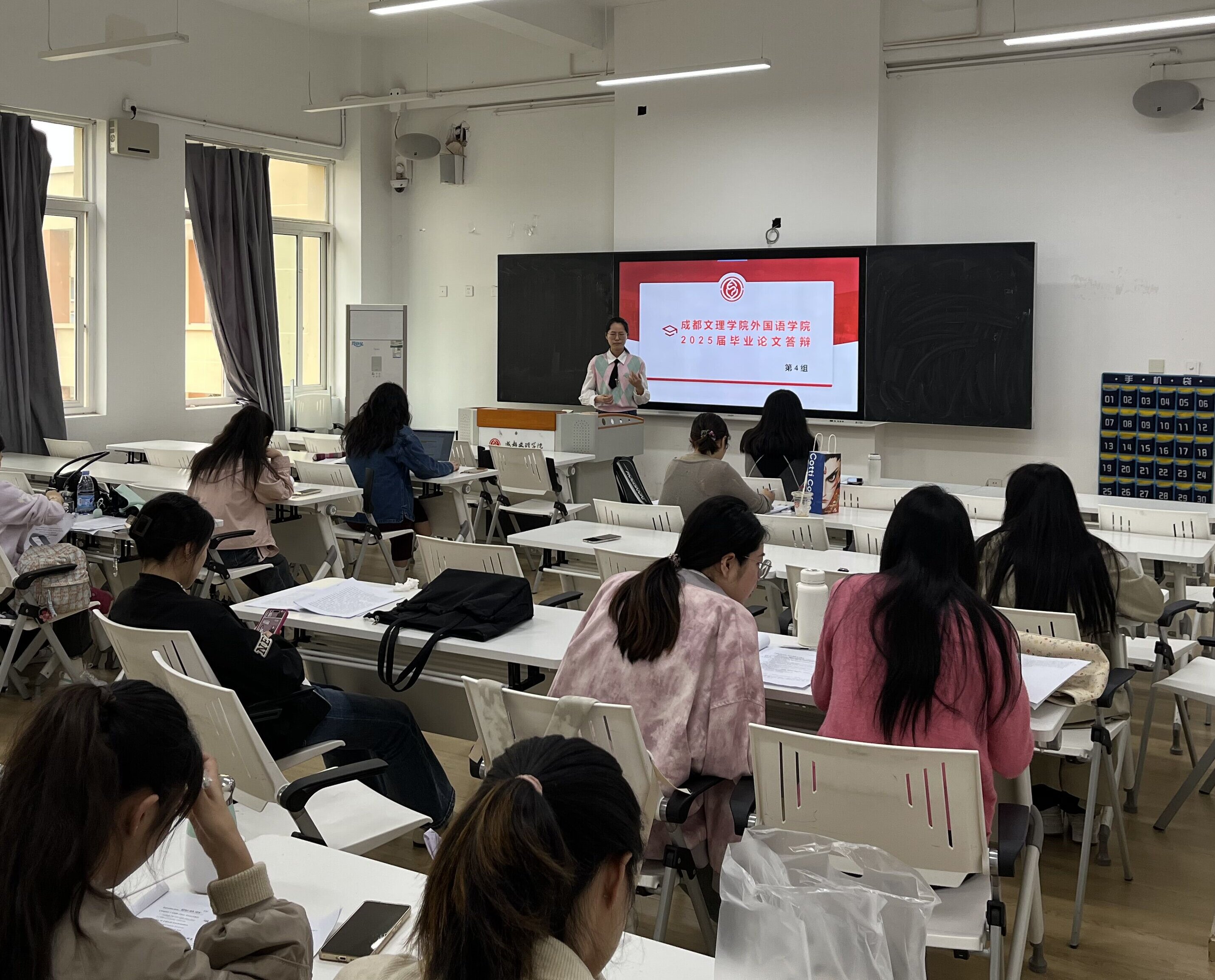 随后分组答辩有条不紊地进行。员工们认真陈述和作答,答辩教师有针对性地提问,并对每个同学论文的优缺点都进行了详细深入的评价。 整个答辩氛围严肃、紧凑、融洽。