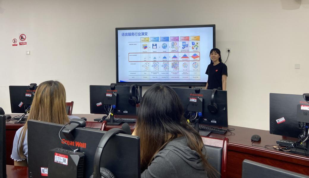 周薇老师首先从语言服务行业演变、语言服务的技术发展、机器翻译技术的范式变化、翻译项目支撑技术、翻译活动与翻译技术的关系等理论层面,阐述了人工智能在翻译践中的演变路径;其次,以Deepseek大语言模型为媒介,为师生演示如何在翻译实践中撰写结构化提示词,介绍大语言模型辅助翻译的搭建流程。在实操过程中,周薇老师与师生互动,讲解了大语言模型辅助技术在应用时会出现的潜在问题。