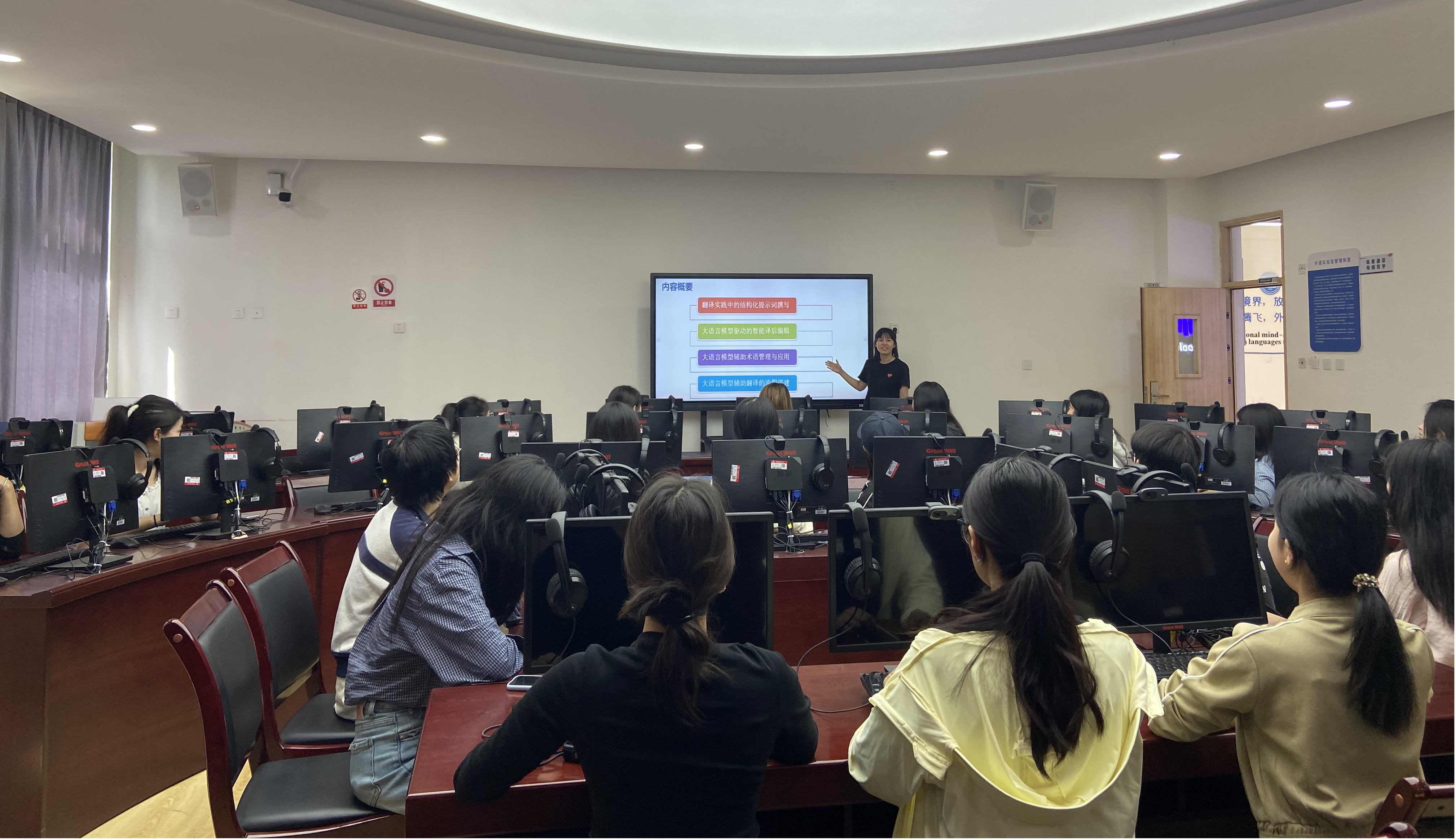 为提升师生数智素养,推动高等教育与人工智能的深度融合,mk体育英语专业教研室于2025年4月24日成功举办“大语言模型与翻译实践:以Deepseek为例”专题讲座。本次讲座由英语专业周薇老师主讲,英语专业师生代表参加。