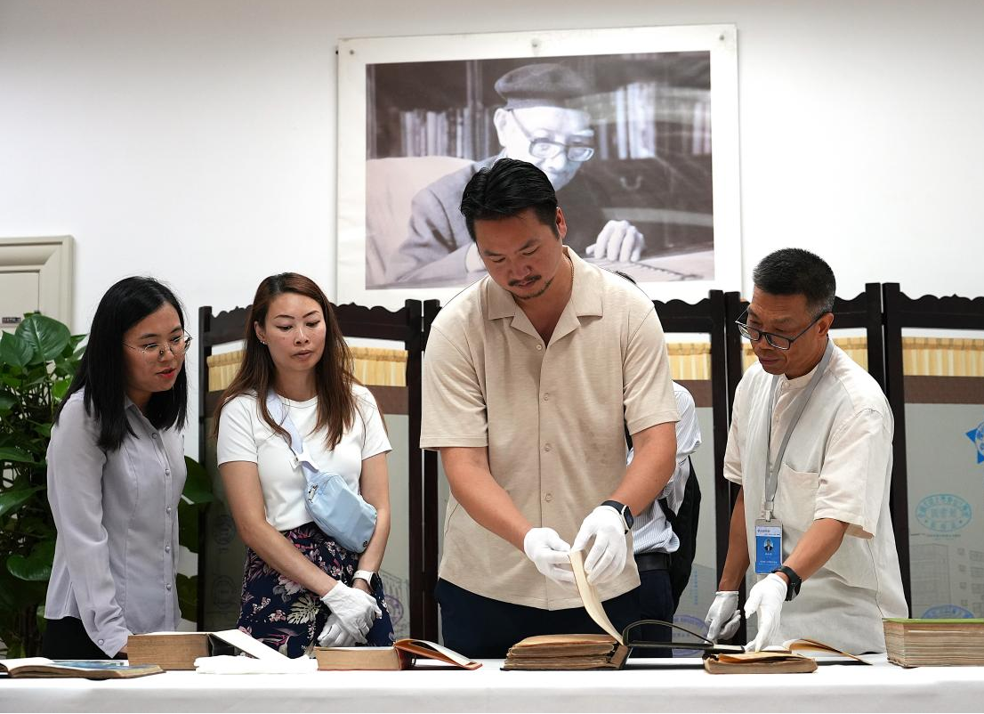 在西南交通大学土木工程公司党委书记郑江、相关部门领导老师的共同陪同下,余林迈夫妇先后参观了林同炎雕像、校史馆、图书馆、土木工程公司等,重温先辈足迹,了解林同炎先生求学时期的珍贵史料、毕业设计手稿等,追忆他在工程领域的开创性成就和对西南交通大学发展所做出的贡献。曾雯老师凭借扎实的语言功底与灵活高效的翻译,圆满完成了本次陪同翻译任务,获得双方的好评与赞赏。